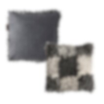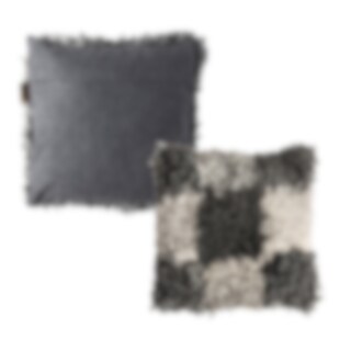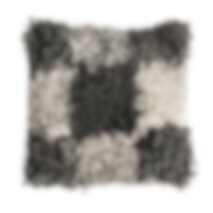 Shepherd Rute. A checkered cushion in genuine Gotlandic wool, known for its unique curls and glossy texture. Each cushion is unique and showcases the natural beauty and variety of sheepskin. The back is in woven wool. Hidden zipper.