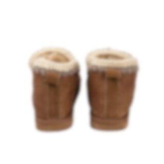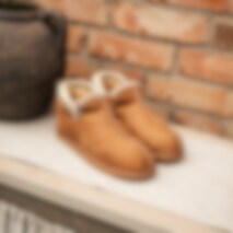 Gefertigt aus weichem, atmungsaktivem Lammfell zeichnet sich Juliet mit sichtbaren Nähten, einem Textilband und einer praktischen Wildlederschlaufe an der Ferse aus. Die leichte EVA-Außensohle bietet angenehmen Komfort und sicheren Halt, perfekt für den Alltag zu Hause.