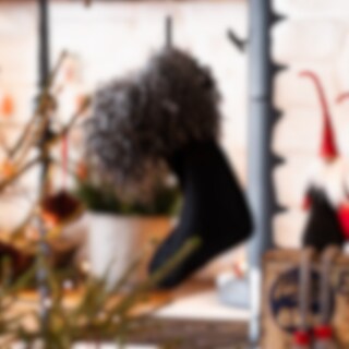 Shepherd Franni. Dieser Weihnachtsstrumpf aus Wollgewebe schmückt sich mit einem breiten Fellbesatz vom klassischen lockigen Gotlandschaf. Diese hübsche Deko sorgt für authentische Weihnachtsstimmung.