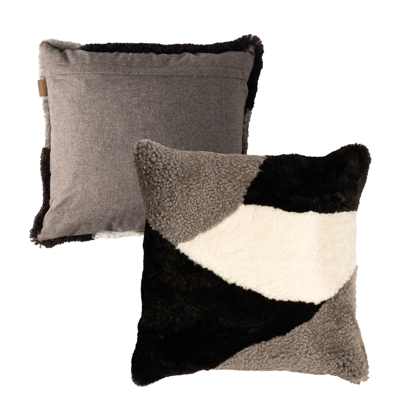 Shepherd Hille. Gemustertes Kissen aus Schaffell. Rückseite aus Wollgewebe. Verdeckter Reißverschluss. Alle Felle sind Naturprodukte und können daher Abweichungen hinsichtlich der Struktur aufweisen.