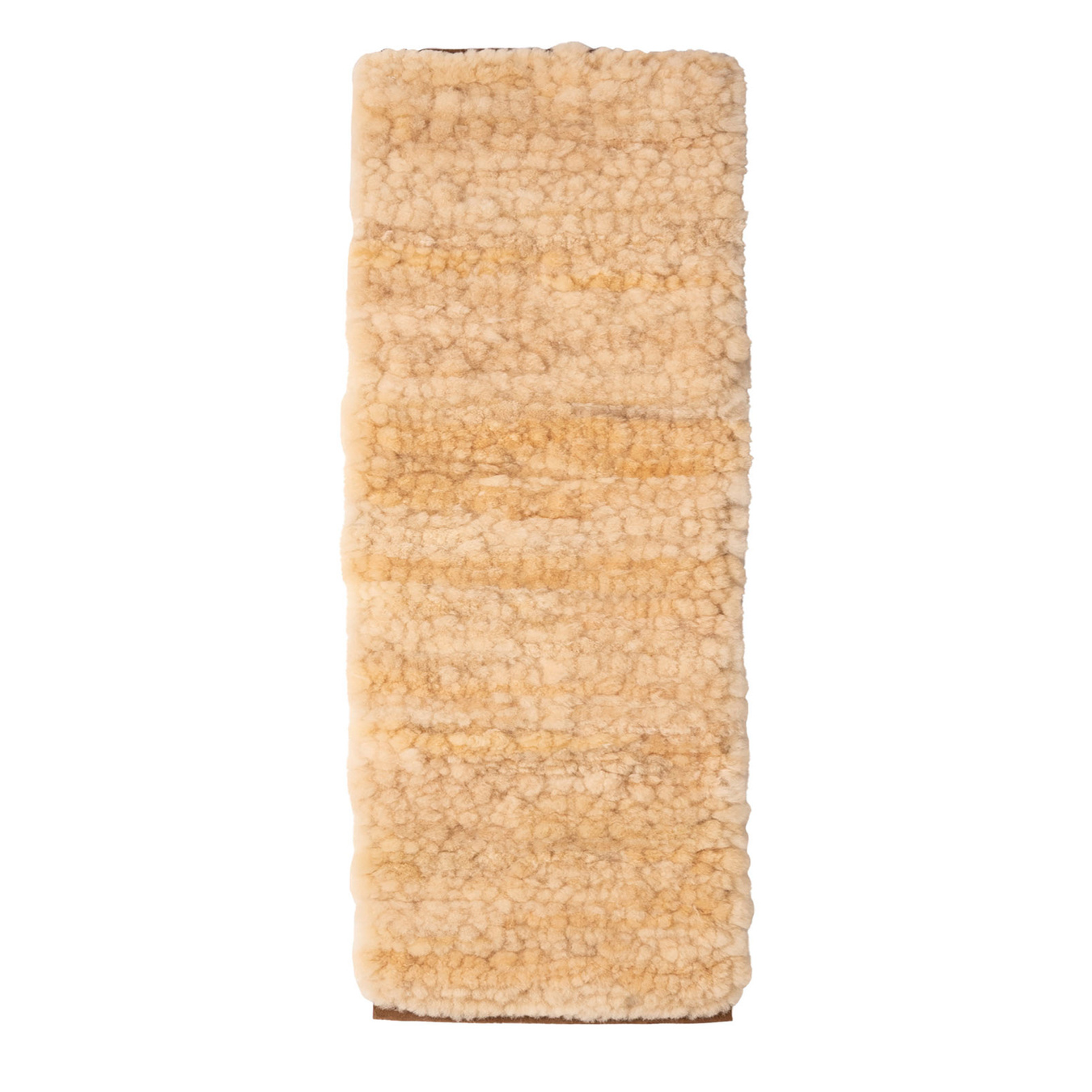 Shepherd Lagan. Diese längliche Patchwork-Sitzauflage aus gewebtem Lammfell passt perfekt auf eine Bank. Größe 30x80 cm. Dicke 2 cm.