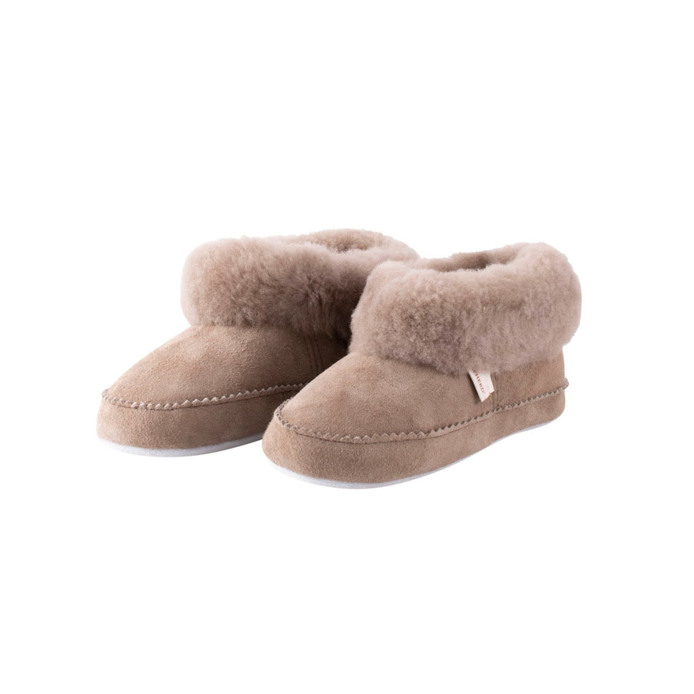 Unsere weichen, warmen Kinder-Hausschuhe Shepherd Piteå sind aus Lammfell gearbeitet. Das knöchelhohe Modell ziert ein breiter Fellkragen. Dekorative Nähte. Weiche Sohle aus Veloursleder.