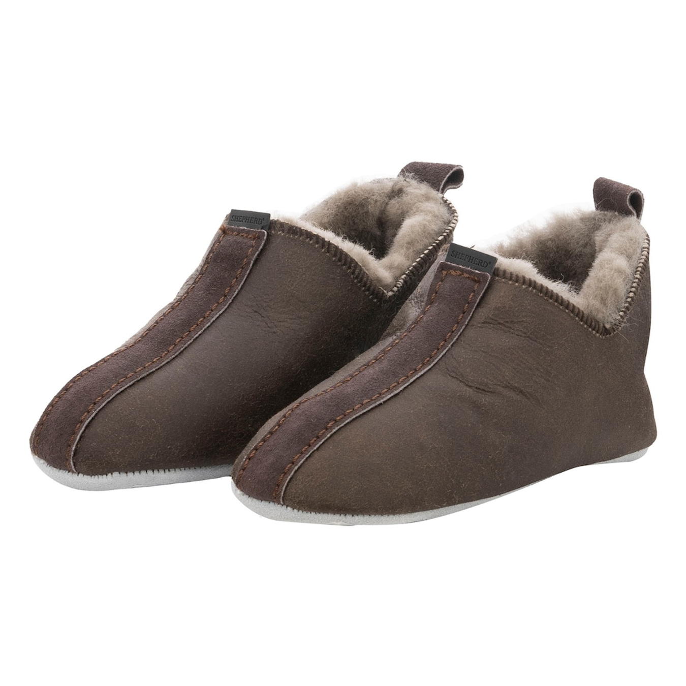 Unsere weichen, wärmenden Kinder-Hausschuhe Shepherd Viared sind aus Lammfell gearbeitet. Das knapp knöchelhohe Modell lässt sich dank des seitlichen V-Ausschnitts kinderleicht an- und ausziehen. Dekoratives Velourslederband und Fersenschlaufe. Weiche Sohle aus Veloursleder.