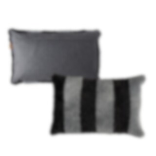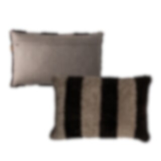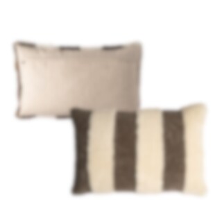 Shepherd Rand. A cushion with stripes, made from soft short-haired sheepskin with origins from Australia. Each cushion is unique and showcases the natural beauty and variety of sheepskin. The back is in woven wool. Hidden zipper.