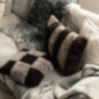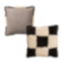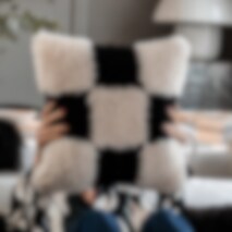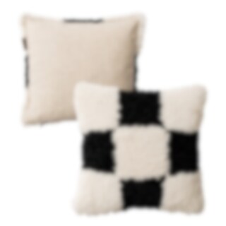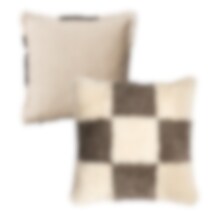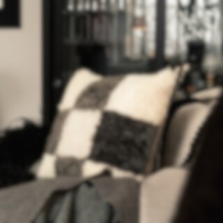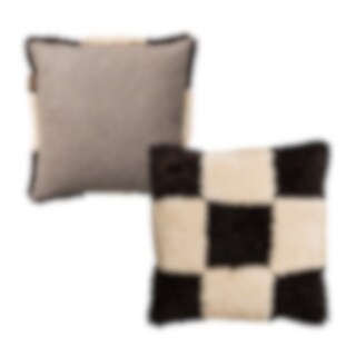 Shepherd Ruth. A checkered cushion in sheepskin. The back made of weaved wool. Hidden zip.