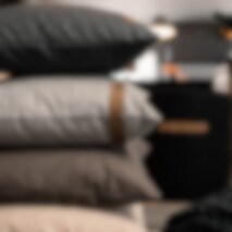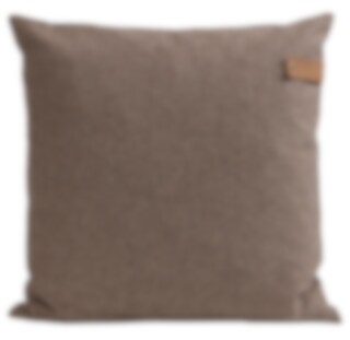 Shepherd Tina. A cushion made from soft, weaved wool with a decorative leather imatation handle. The cushion cover is removable and washable with a hidden zip. The inner cushion is a polyester mix with a filling of 50% silicon and 50% duck feathers which makes the cushion fluffy and allows it to keep its form.