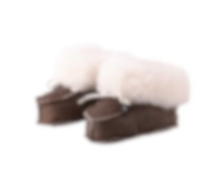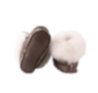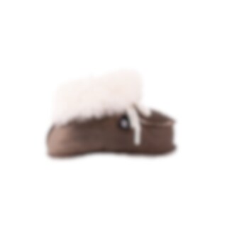 Shepherd Gävle is a pair of comfortable and warm ankle-high sheepskin slippers for babies. The slippers have a wide sheepskin rim. To make the slippers fit properly and make them easy to put on and take off, they have lacing. The sole is made from soft suede.