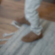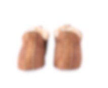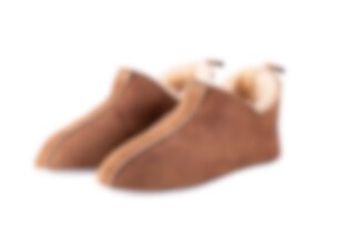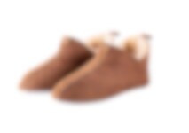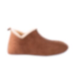 Shepherd Viared. Warm and soft sheepskin slippers. The slippers are a low ankle high slip-in model. They have little slits on the sides making them easy to put on and take off. The slippers have a decorative suede binding and a tag at the back. The sole is made from soft suede.