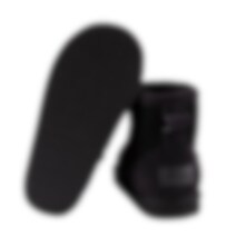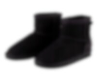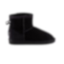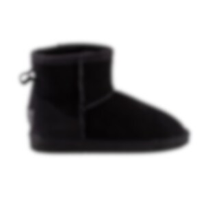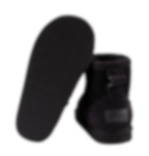 Shepherd Mora is a pair of comfortable and warm sheepskin ankle-high boots for children. The boots have decorative surface stitching and binding in the fabric around the sole and shaft. There is a tag at the back. The outer sole is 1cm thick and made of EVA.