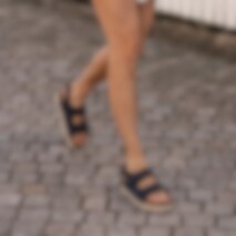 Shepherd Belinda. A pair of ergonomic sandals in wool. The sandals have adjustable straps with velcro fastening. The foot-shaped cork sole is covered in suede to help the sandals breathe naturally. EVA outer sole for a light and cushioned sandal.