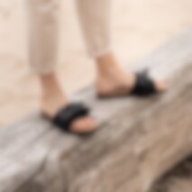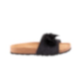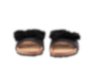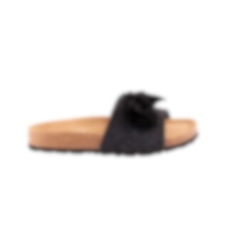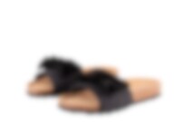 Shepherd Silvia is a pair of slip-on sandals open at the toes. The sandals have a big decorative bow at the front. The foot-shaped sole is made from cork covered in suede making them breathe naturally. The outer sole is made from EVA making them light and cushioned.