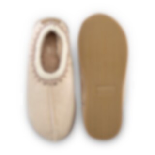The inside is lined with soft sheepskin that warms while allowing the foot to breathe, making them comfortable to wear all day long. A perfect transitional shoe between summer and autumn, or as slippers to wear indoors all year round. With a durable rubber sole, you get reliable grip both indoors and outdoors. The textile trim around the opening frames the design and completes the timeless look.