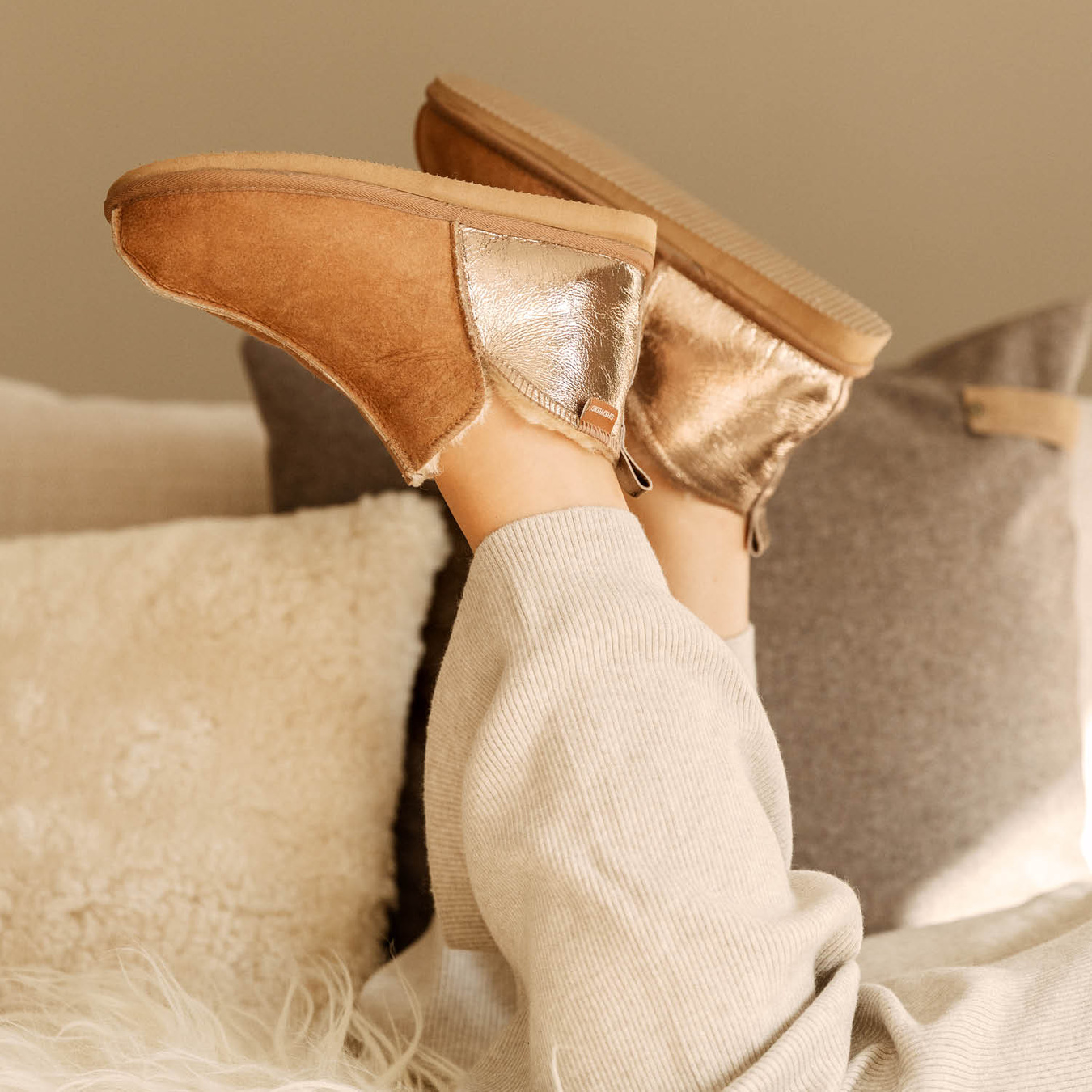 Shepherd Annie er en ankelhøj fåreskindstøffel, der kombinerer varme og stil. Den bløde inderside i fåreskind er åndbar og holder fødderne komfortable, mens de dekorative sømme og tekstilkanten giver et tidløst look. Med en praktisk strop i ruskind og en let EVA-ydersål er de perfekte som indesko. Annie er en af vores bedst sælgende modeller.