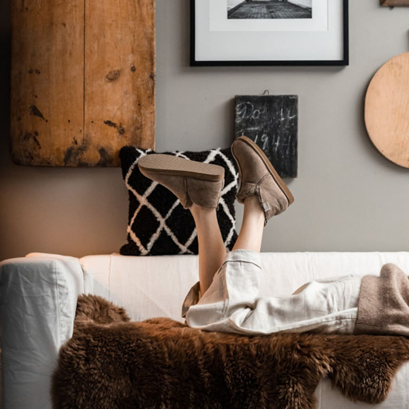 Shepherd Annie er en ankelhøj fåreskindstøffel, der kombinerer varme og stil. Den bløde inderside i fåreskind er åndbar og holder fødderne komfortable, mens de dekorative sømme og tekstilkanten giver et tidløst look. Med en praktisk strop i ruskind og en let EVA-ydersål er de perfekte som indesko. Annie er en af vores bedst sælgende modeller.