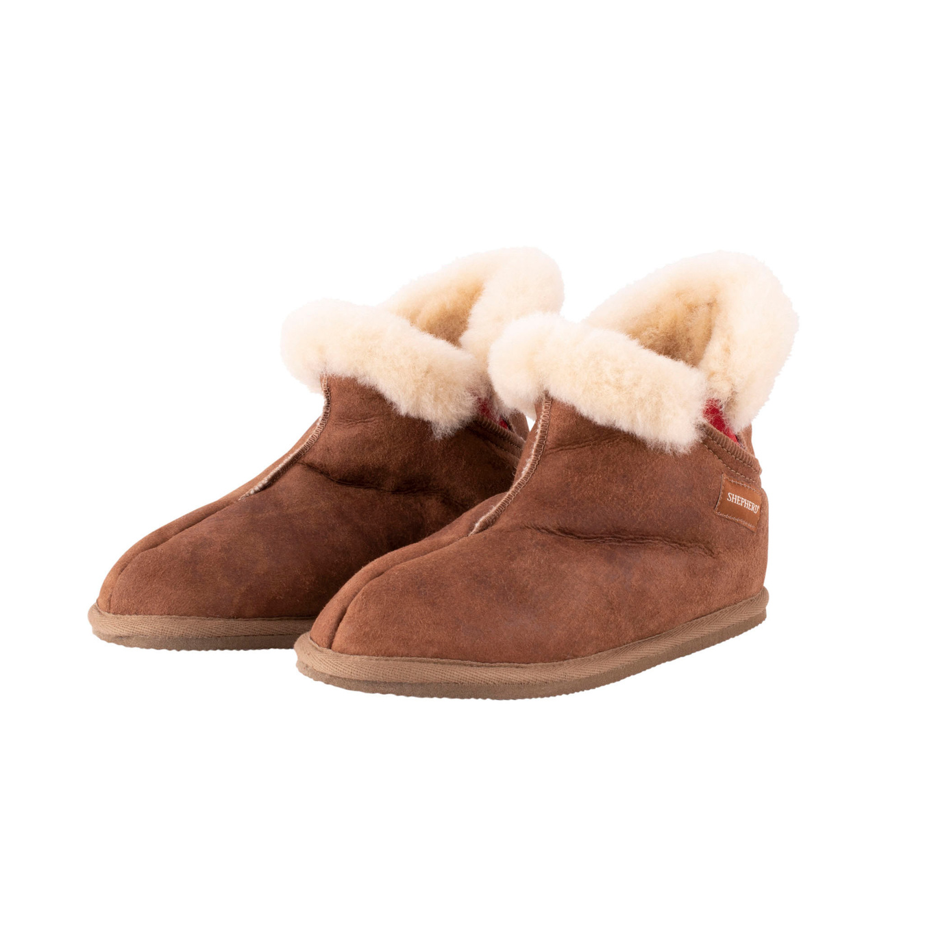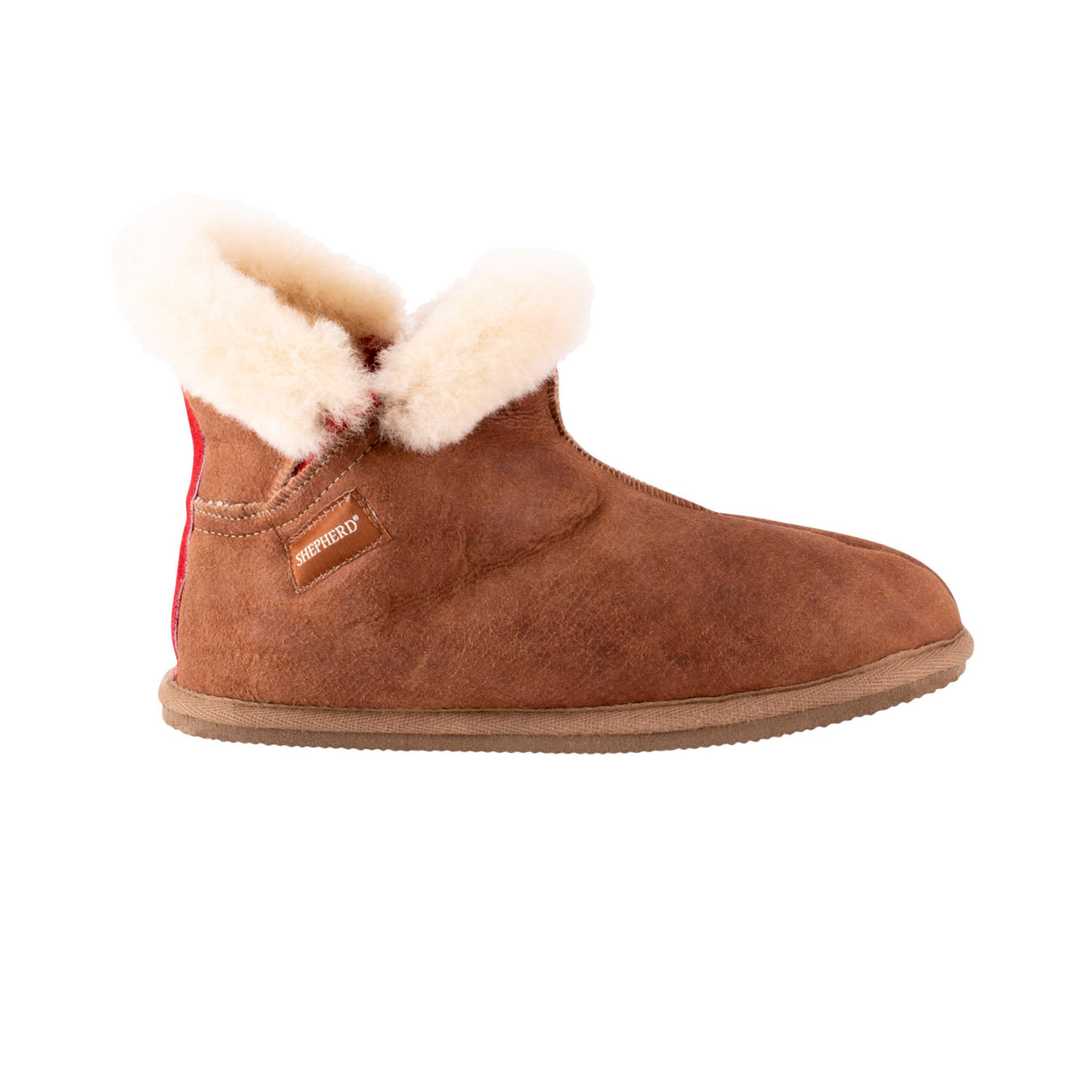 Shepherd Bella er en ankelhøj tøffel i blødt fåreskind, der omslutter hele foden. Perfekte tøfler, når temperaturen falder, og du vil have det ekstra behageligt derhjemme. Med den lette EVA-sål fungerer de som en praktisk indesko.