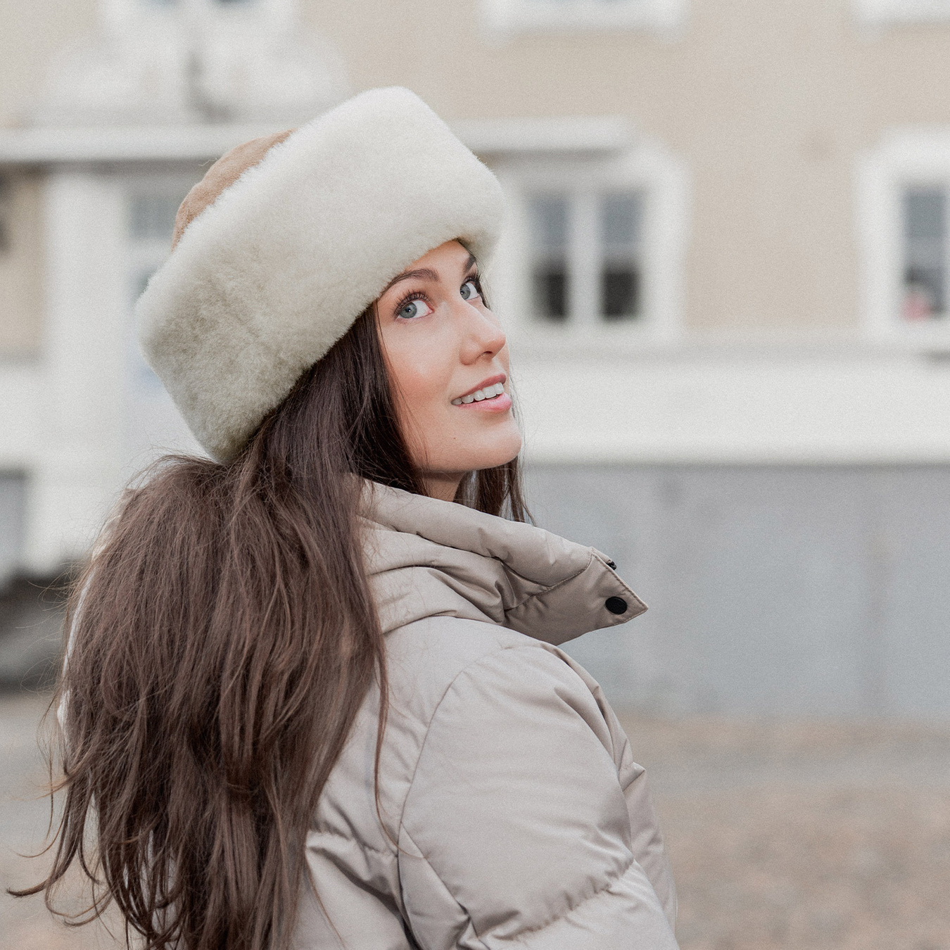 Fåreskind er et naturligt materiale, der former sig efter dit hoved og bliver endnu mere komfortabelt med tiden. Hvis du ligger mellem to størrelser, anbefaler vi, at du vælger den større.