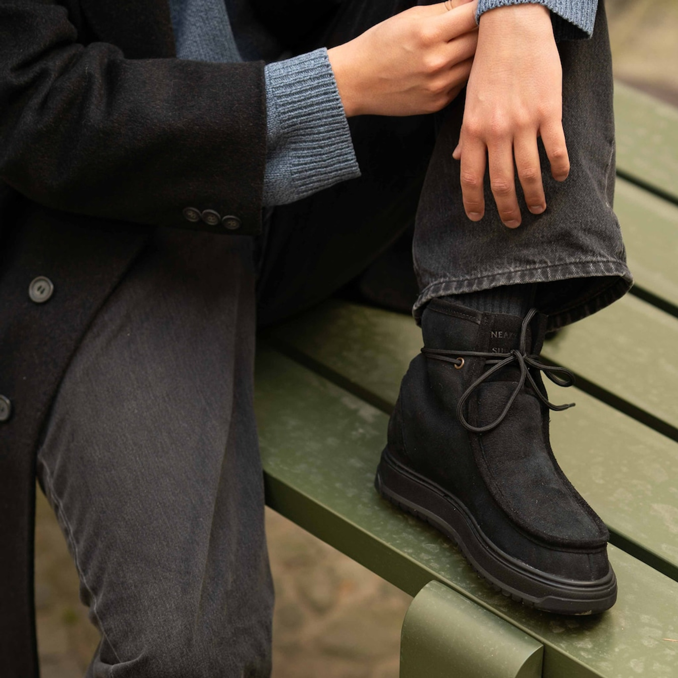 Sneaky Steve x Shepherd Kay er støvlerne, der føles rigtige fra første skridt. Foret med blødt fåreskind og med en fleksibel sål i naturgummi, der giver både greb og bevægelsesfrihed. Det behandlede læder modstår fugt, så du kan gå ud selv når vejret er råt – uden at gå på kompromis med komforten.