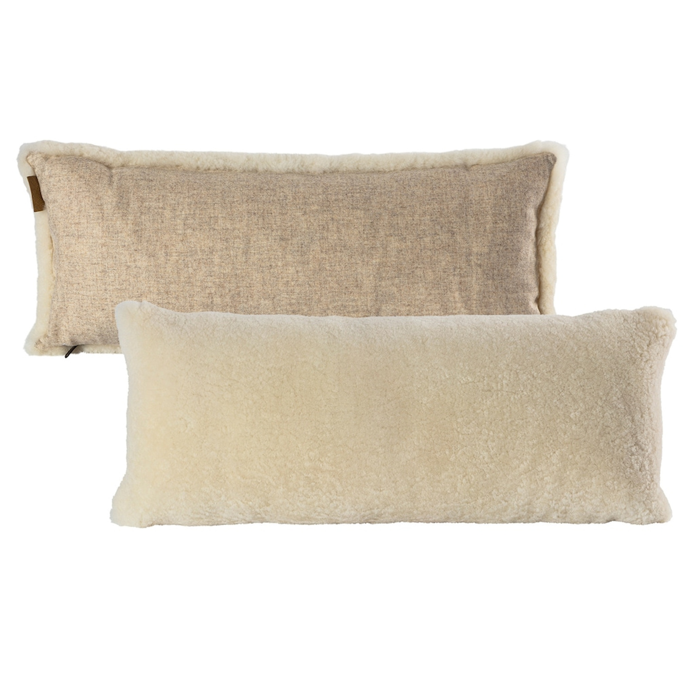 Shepherd Lina. En pude med forside i korthåret, blødt fåreskind med australsk oprindelse og bagside i vævet uld. Skjult lynlås. Inderpude i polyesterblanding med fyld af 50 % siliconeskruer og 50 % andefjer, hvilket gør, at puden føles luftig og holder sin form. Alle fåreskind er naturlige og kan derfor variere i deres naturlige struktur. 60x25cm