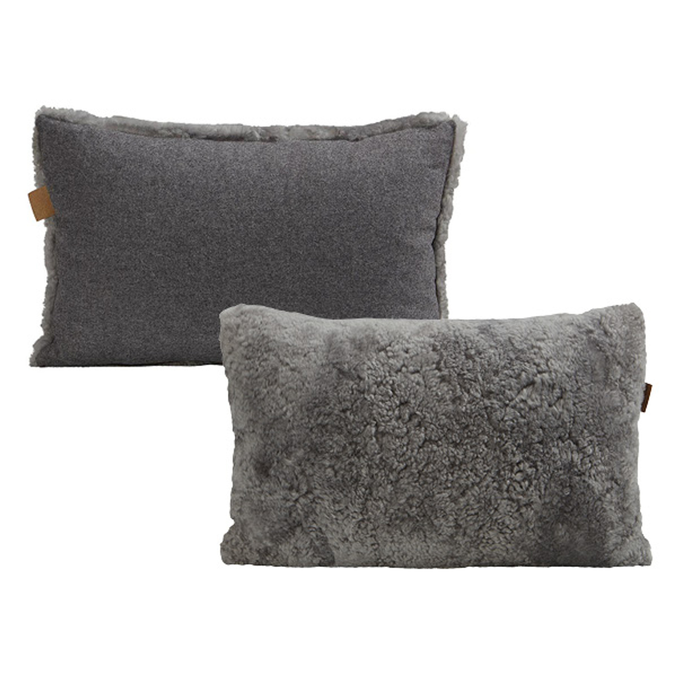 Shepherd Lina. En pude med forside i korthåret, blødt fåreskind med australsk oprindelse og bagside i vævet uld. Skjult lynlås. Inderpude i polyesterblanding med fyld af 50 % siliconeskruer og 50 % andefjer, hvilket gør, at puden føles luftig og holder sin form. Alle fåreskind er naturlige og kan derfor variere i deres naturlige struktur. 60x40cm