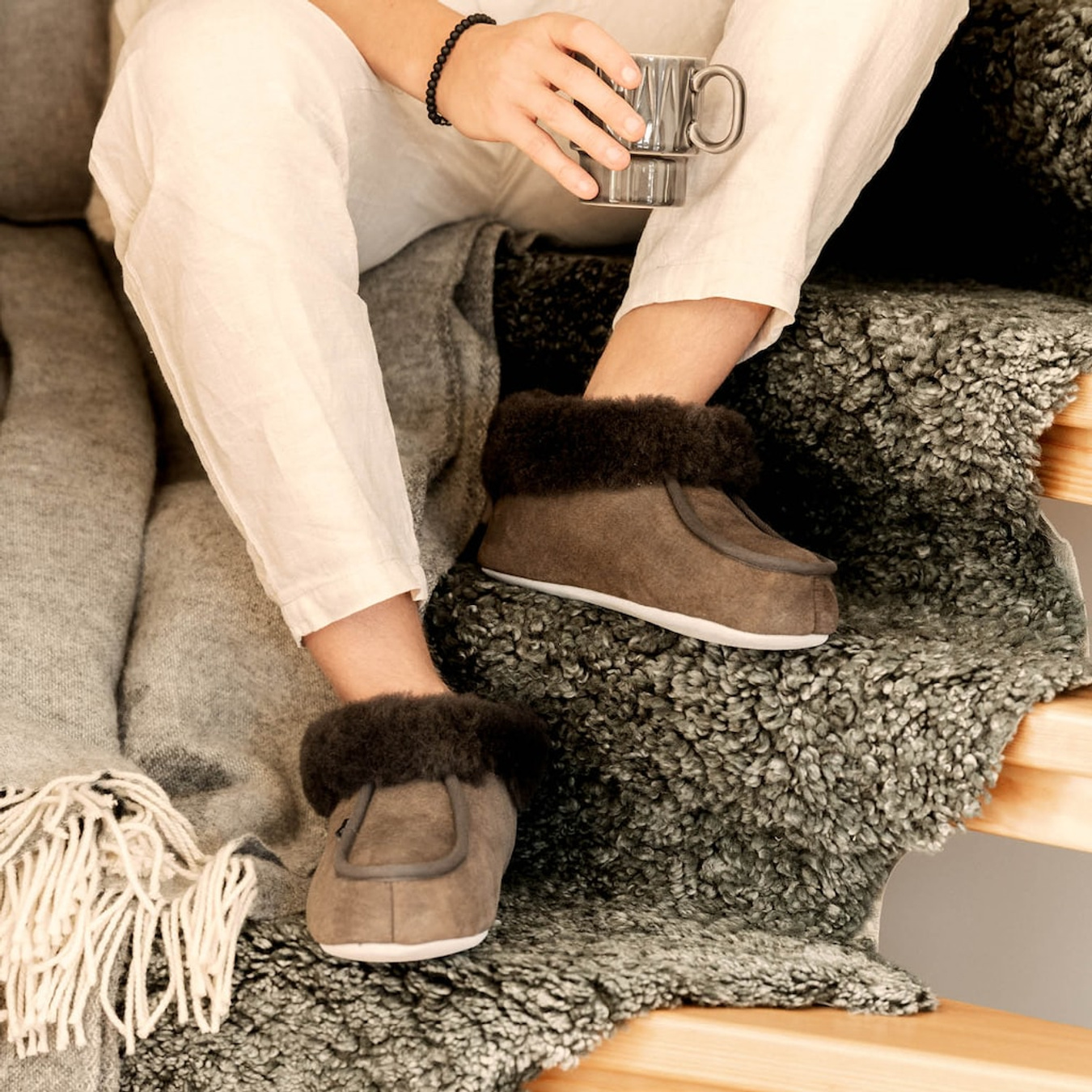 Shepherd Magnus er originaltøflerne – perfekte til hyggelige hjemmestunder, dag efter dag. Den ankelhøje model med bred fåreskindskrave giver masser af varme, når det er nødvendigt, mens de diskrete tekstilkanter holder formen pæn.