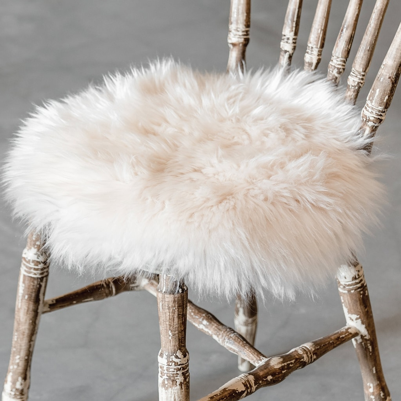 Shepherd Molly. En stolehynde med overside i blødt, langhåret fåreskind. Alle fåreskind er naturlige og kan derfor variere i deres struktur. Underside i ufarvet læder.