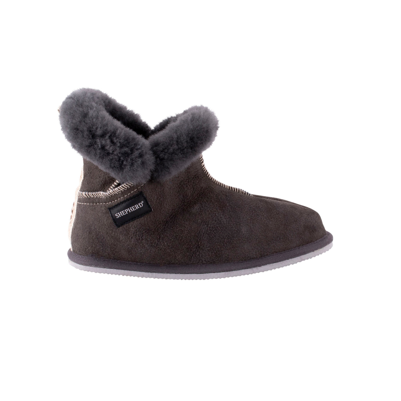 Shepherd Oskar er en varm og robust herretøffel i fåreskind, udviklet til dig, der vil have ekstra varme og komfort, når kulden sætter ind. Den lidt højere ankelmodel sidder godt på foden, mens kontrastfarvede elastikbånd i siderne gør den nem at tage af og på.