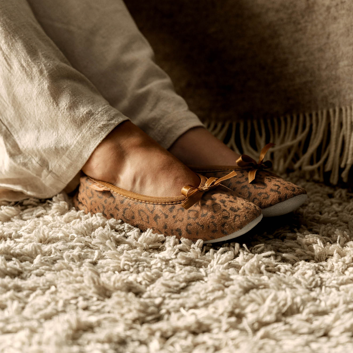 Shepherd Saga er en nænsom ballerinamodel i det blødeste fåreskind. Den elastiske kant giver en fleksibel pasform og sikrer, at tøflerne sidder godt på foden uden at glide af. En dekorativ sløjfe foran tilfører et elegant touch.