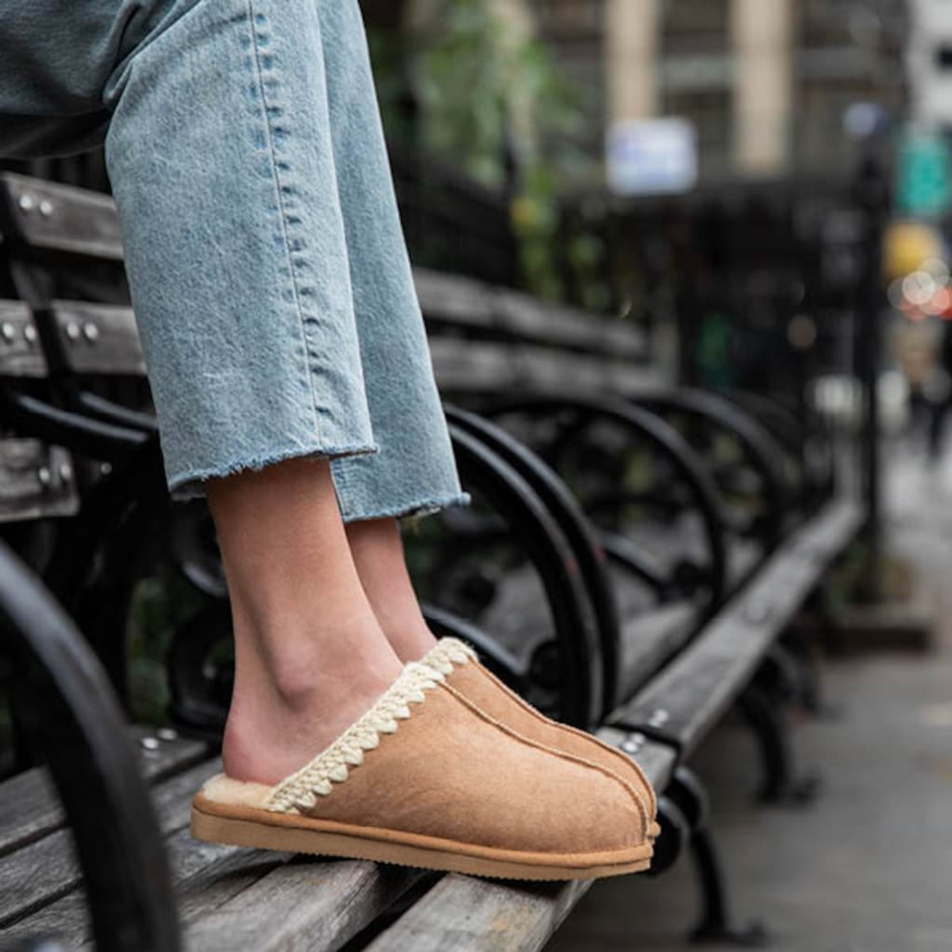 Shepherd Selina er klassiske slip-in tøfler i blødt fåreskind, skabt til at gøre hverdagen lidt blødere. Den håndbroderede udvendige søm tilfører en smuk fornemmelse af håndværk, mens tekstilkanten omkring sålen giver en diskret og stilfuld finish. Den lette EVA-ydersål gør dem lige så behagelige på en bytur som i hjemmets ro.