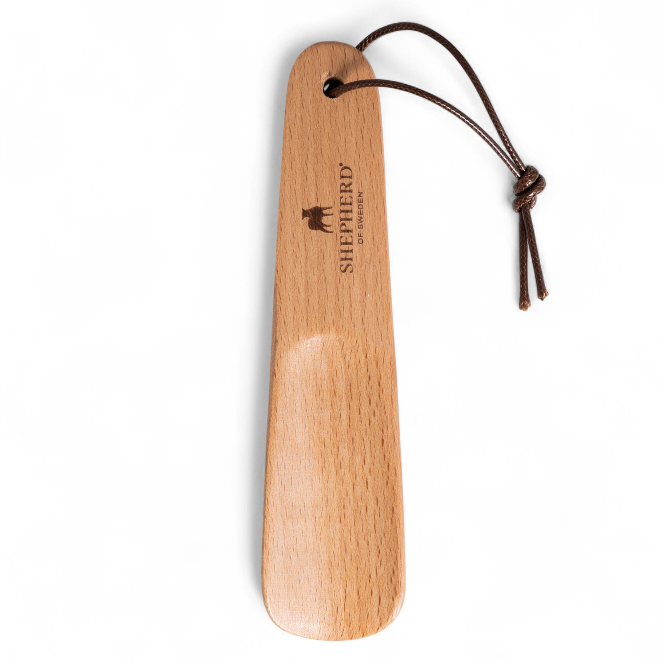 Et praktisk og stilrent skohorn i træ. Skohornet gør det enklere at tage skoene på, samtidig med at det beskytter både hæl og sko mod unødig slitage.