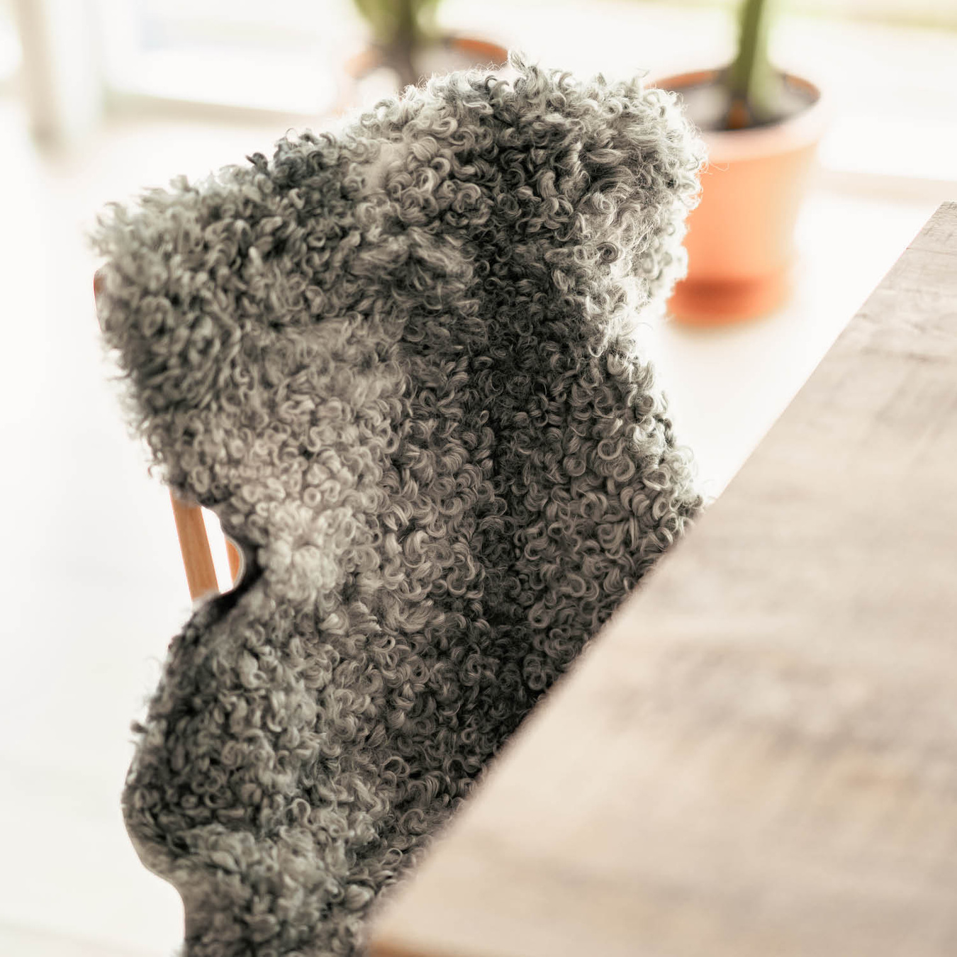 Shepherd Visby. Et korthåret klassisk gotlandsk fåreskind. Hvert fåreskind er helt unikt og kan derfor variere i både farvenuance og udseende. Bagside i naturligt, ufarvet læder.