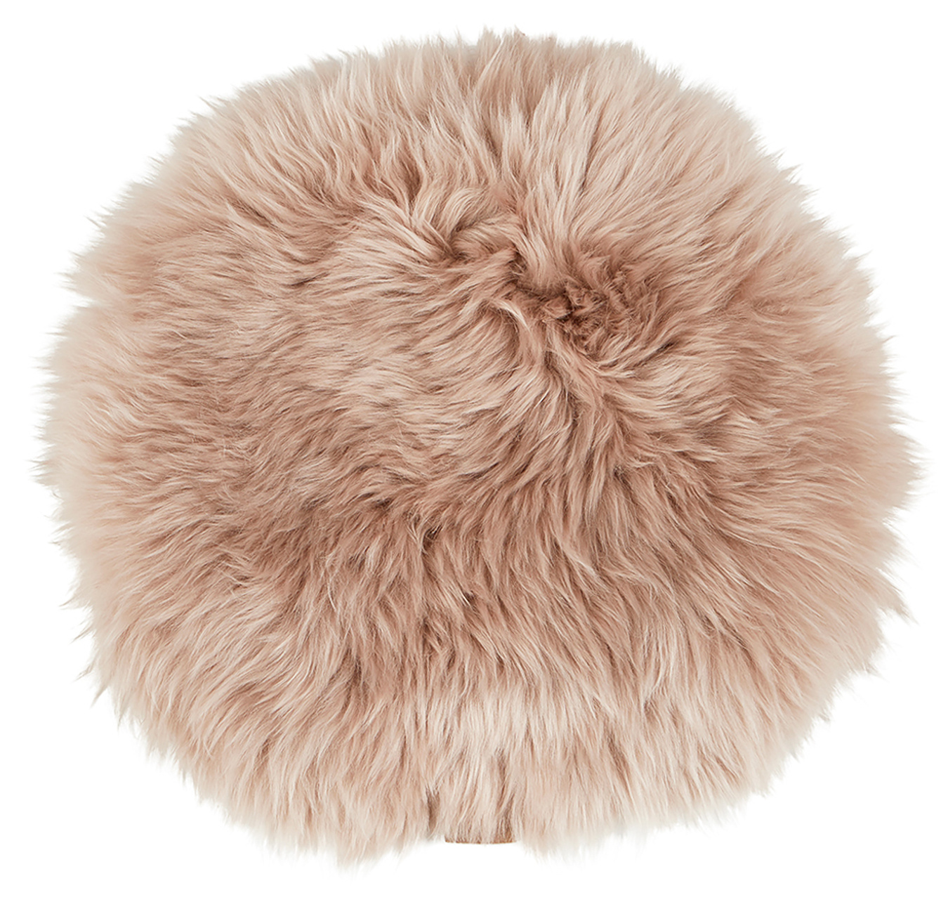 Shepherd Molly. A soft chair cushion made from long-haired sheepskin. All sheepskins are natural and therefore can be variations from their natural structure. Underside in undyed leather. 36 cm Ø (14,17").