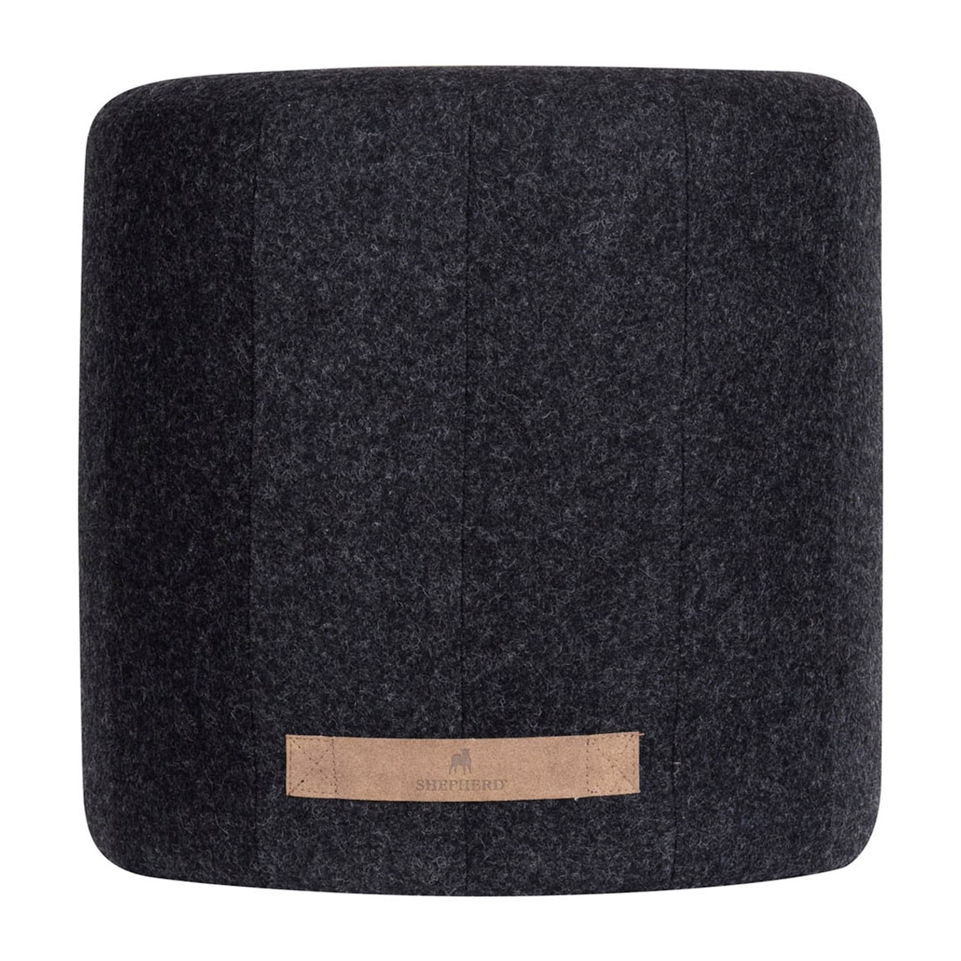 Shepherd Zoe is a round pouf made from woven soft wool. The pouf is built up of a sturdy bottom which makes the pouf hold its form. The top is made from foam for comfort. The sheepskin covering is removable and washable with a drawstring on the bottom. The underneath is made from woven fabric. 40x40cm