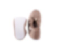 Shepherd Varberg sont une paire de pantoufles douces et souples, en peau de mouton, pour enfant, de type chaussons de ballerine fins. Ces chaussons ont une bande élastique sur le dessus, ce qui leur permet de rester sur le pied, sans glisser. Ils ont un nœud décoratif à l'avant. La semelle est fabriquée en suède doux.