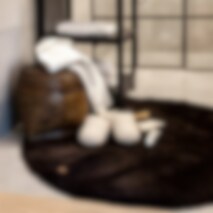 Shepherd Ebba. A big, soft, round rug made from short-haired sheepskin with origins from Australia. All the sheepskins are natural and therefore variations in structure can occur. The back of the sheepskin is natural leather.