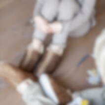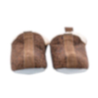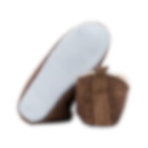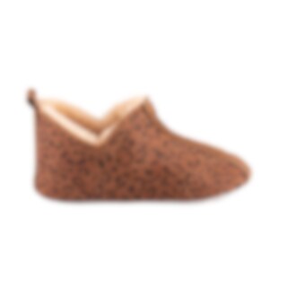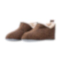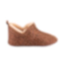 Shepherd Viared. Warm and soft sheepskin slippers. The slippers are a low ankle high slip-in model. They have little slits on the sides making them easy to put on and take off. The slippers have a decorative suede binding and a tag at the back. The sole is made from soft suede.