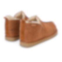 Shepherd Anton is a pair of ankle-high men’s slippers in soft sheepskin that has remained a bestseller year after year. They provide warmth and a comfortable fit, with small side slits that make them easy to slip on and off. Visible seams and a suede pull tab at the back add a clean, classic look. The lightweight and durable EVA outsole makes Anton a reliable choice for cold floors and relaxed moments at home, while also being practical enough for stepping out onto the terrace or a quick errand.