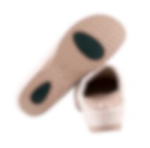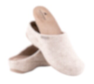 Shepherd Gitte is a pair of soft indoor shoes in felted wool, designed with care for those who need extra support and relief in daily life. The suede insole has a firm, anatomical shape that offers comfortable cushioning and follows the foot’s natural form, with arch support and a slight cupping to stabilize the heel. The 4 cm heel helps distribute pressure evenly and reduces strain on the heel—something many with sensitive feet find highly relieving. The rubber outsole provides secure grip even when stepping outside.