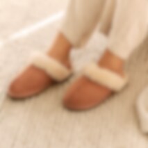 Shepherd Jessica is a slip-in slipper that has become a natural favorite in homes everywhere. The wide sheepskin collar embraces the foot in soft warmth, like a hug you never grow tired of.