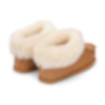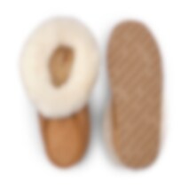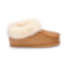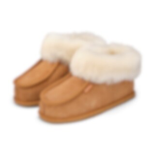 Shepherd Lena is an elegant ankle-high slipper in soft sheepskin, featuring a generous collar that embraces the foot and creates a sense of calm and care. A discreet textile detail at the front adds a craft-inspired touch, enhancing the classic silhouette.