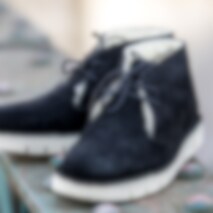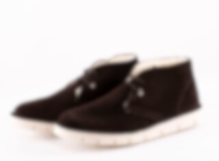 Shepherd Maja are a pair of ankel high leather desert boots with open lacing at the front. The boots have a padded inside. The sole is made from warm and comfortable sheepskin. The outer sole is made from fluted rubber with decorative stripy stiching.