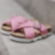 Shepherd Marianne. A pair of sandals in wool with cross-over straps and a large metal buckle. Anatomically designed insole in cork and suede. EVA outer sole.