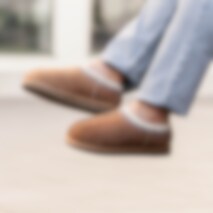 The inside is lined with soft sheepskin that warms while allowing the foot to breathe, making them comfortable to wear all day long. A perfect transitional shoe between summer and autumn, or as slippers to wear indoors all year round. With a durable rubber sole, you get reliable grip both indoors and outdoors. The textile trim around the opening frames the design and completes the timeless look.