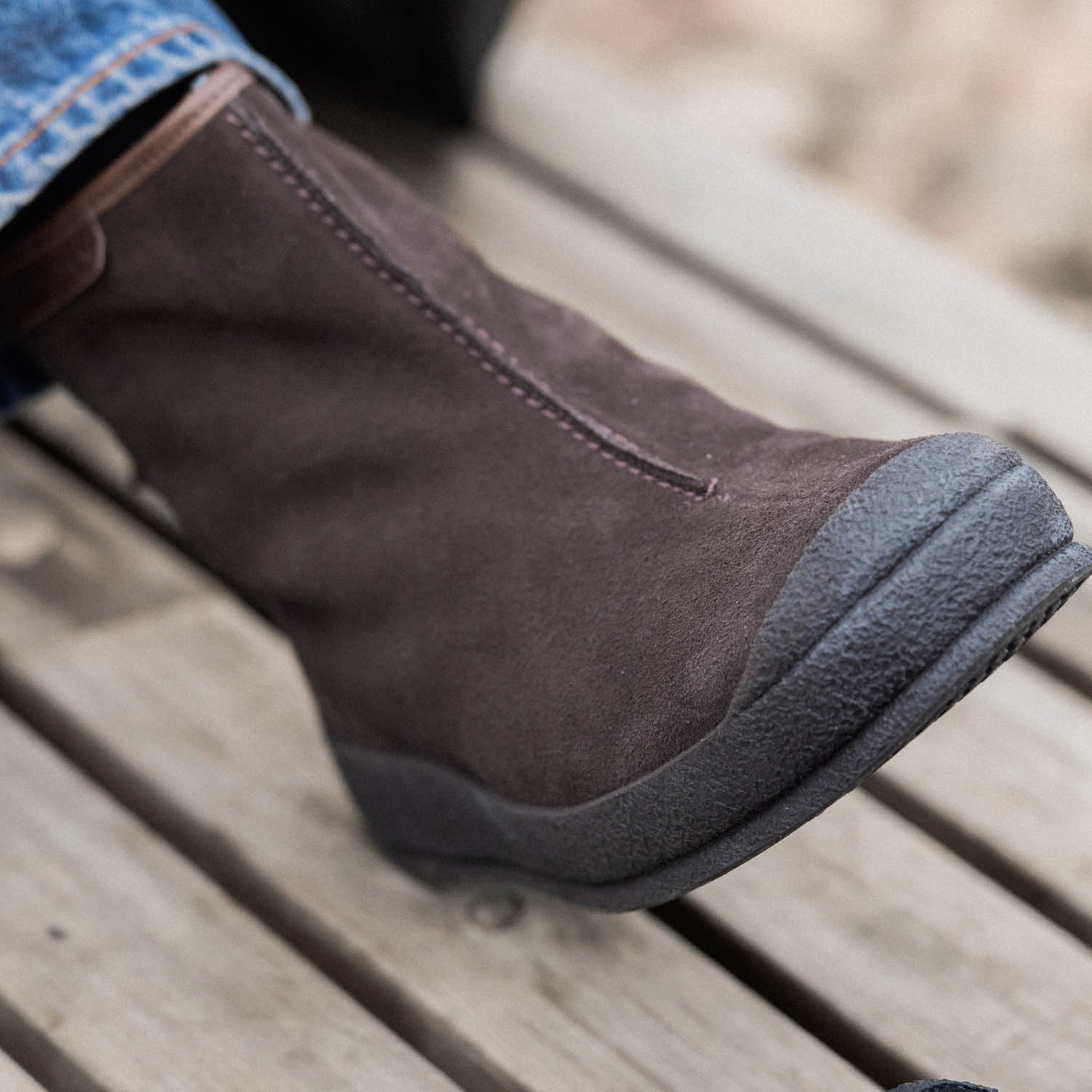 Takana oleva vetoketju helpottaa pukemista, ja etuosan koristeellinen sauma luo hillityn ilmeen. Kulutusta kestävä kuminen ulkopohja tarjoaa hyvän pidon kylminä syys- ja talvipäivinä. Käytännöllinen ja ajaton suosikki niille, jotka haluavat pitää jalat lämpiminä käyttömukavuudesta ja tyylikkyydestä tinkimättä. Tämä malli on reilua mitoitusta, joten suosittelemme valitsemaan pienemmän koon, jos olet kahden koon välillä.