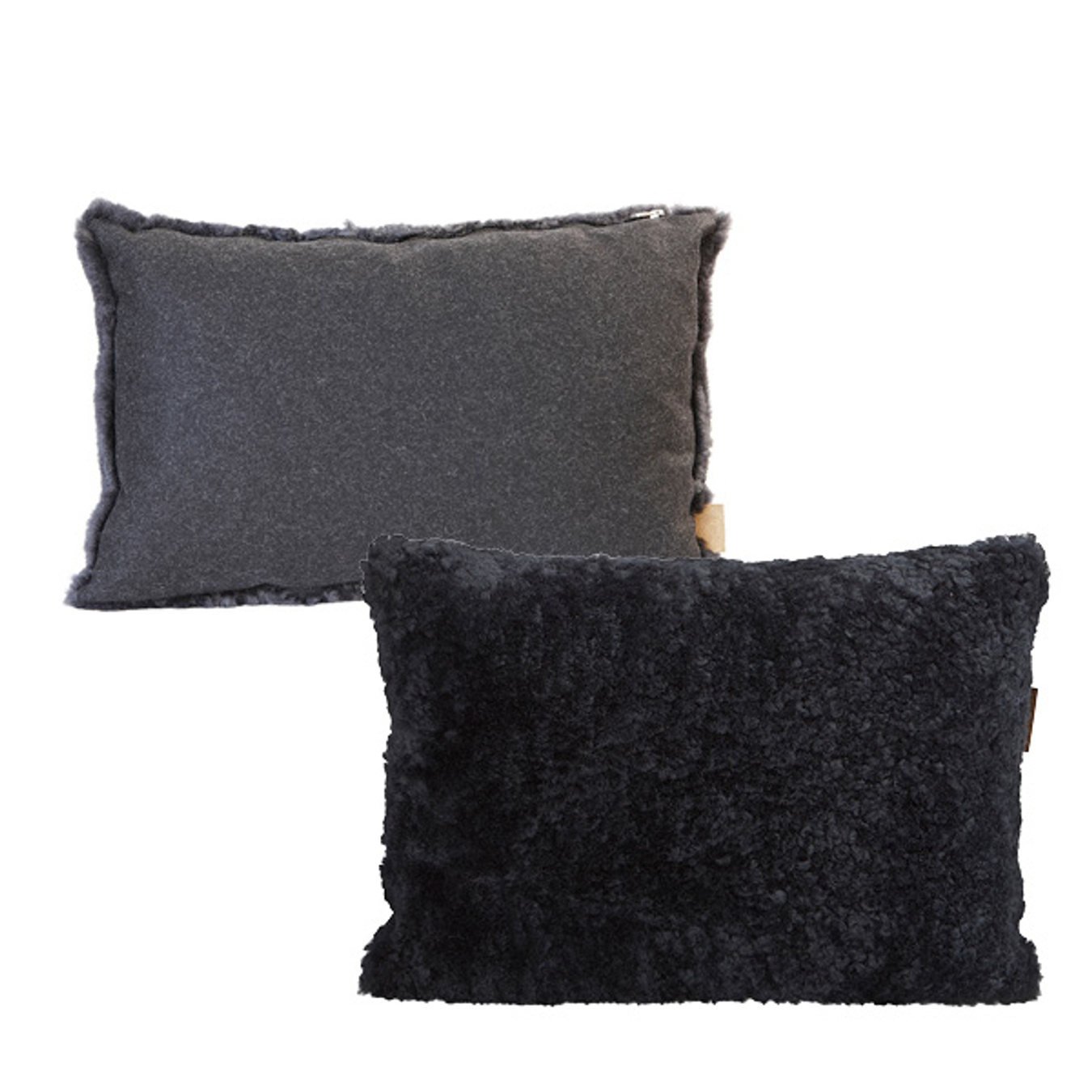 Shepherd Lina. Coussin avec face avant en peau de mouton douce, à poils courts, d'origine australienne, et face arrière en laine tissée. Fermeture éclair cachée. L'intérieur du coussin est en mélange de polyester avec 50 % de fibres de silicone et 50 % de duvet de canard, ce qui rend le coussin moelleux et lui permet de garder sa forme. Comme toutes les peaux de mouton sont naturelles, des variations sont possibles dans leur structure naturelle. 60x40cm