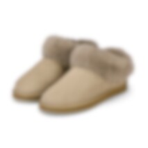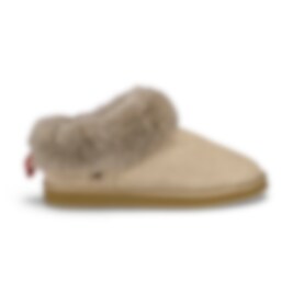 Foten hviler mykt i ekte saueskinn som naturlig regulerer temperaturen og holder deg behagelig varm, uansett om været er kjølig eller mildt. Alaska er en stilsikker tøffel for kalde dager, like selvskreven i hjemmets ro som på en avslappet dag i byen.