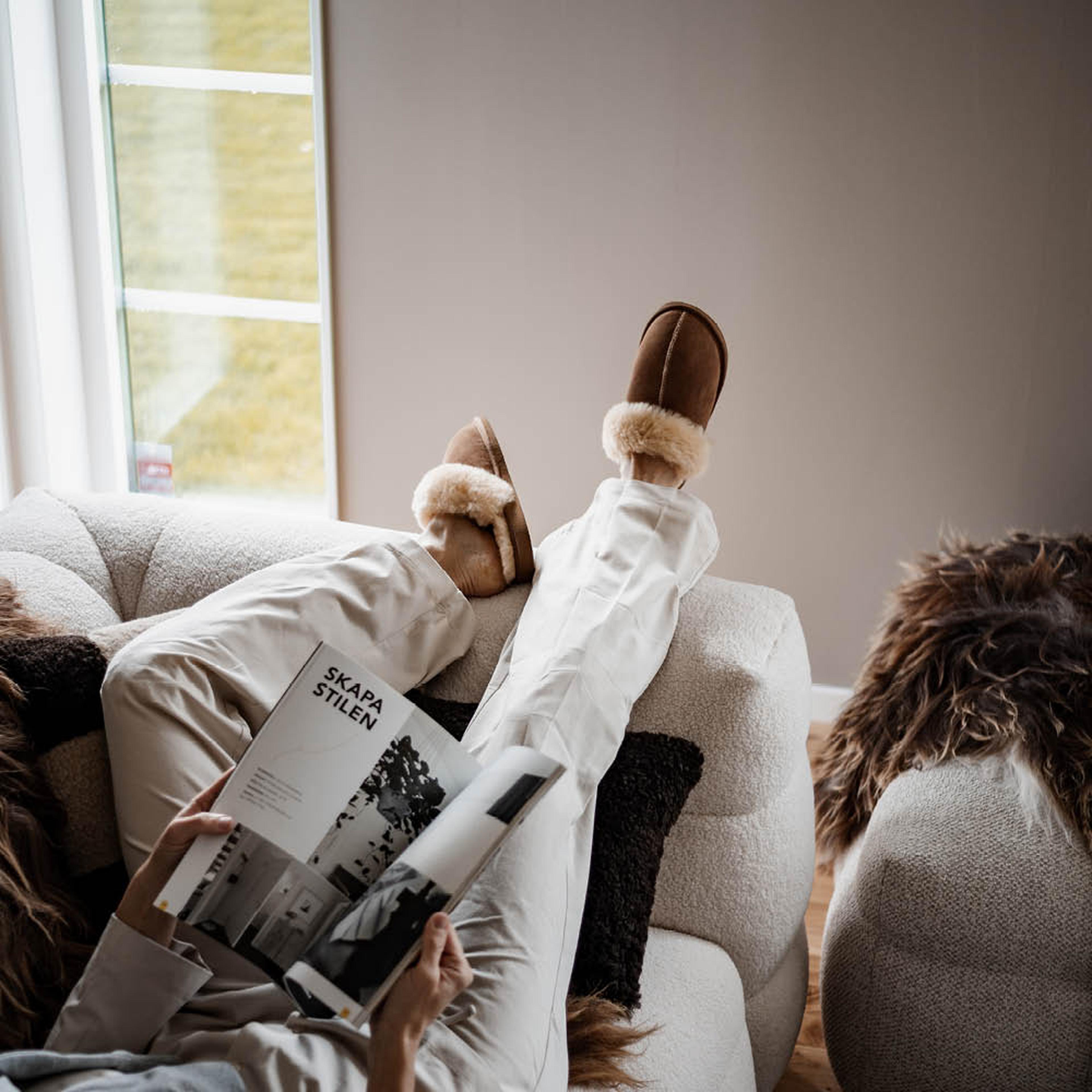 For Gunilla, it’s simple. When the workday ends, her shoes come off in the hallway and her sheepskin slippers Jessica go on – every day, all year round.