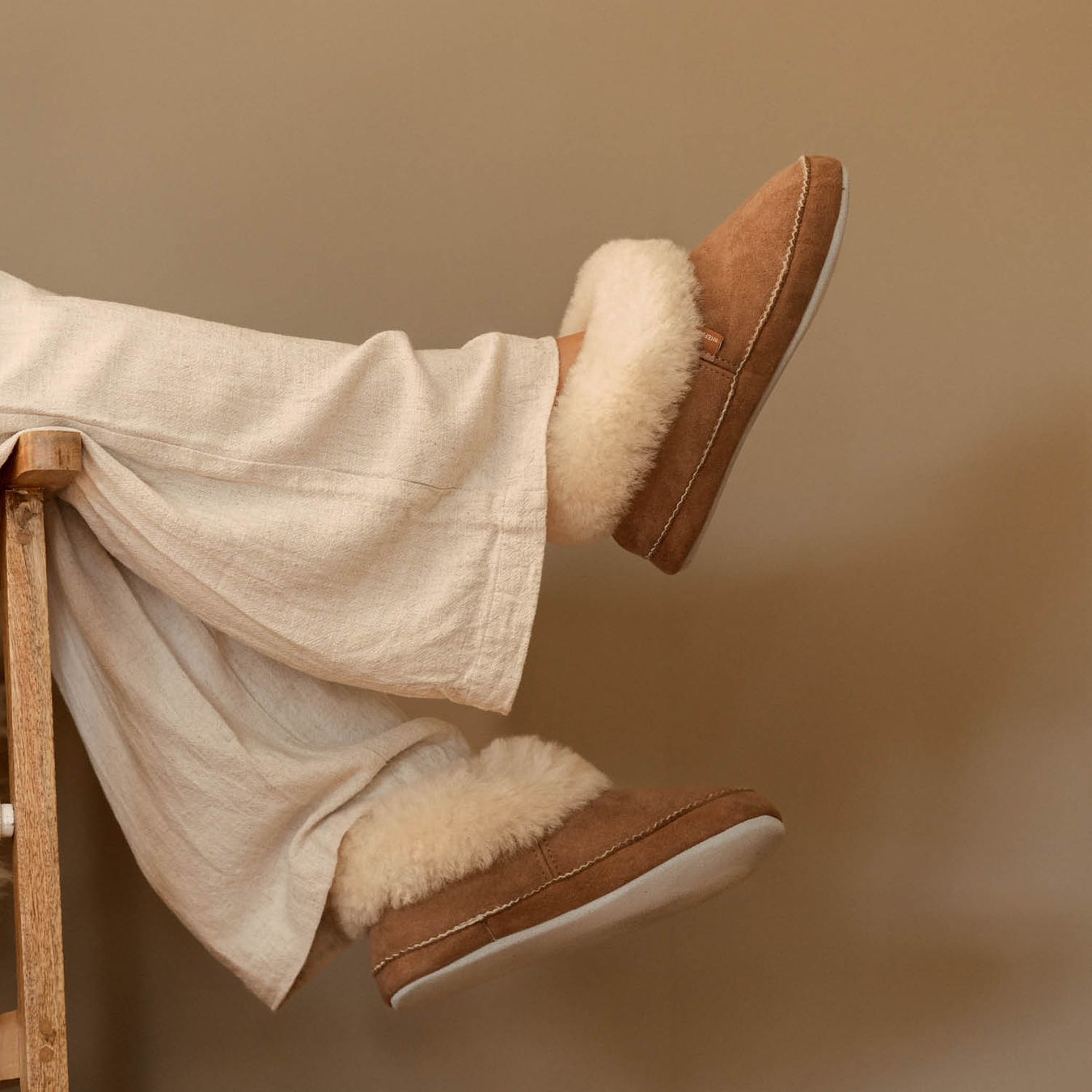 The flexible suede sole gives a natural connection to the floor, enhancing the cozy feeling of home. Thanks to the natural properties of genuine sheepskin, warmth is evenly distributed without ever feeling stifling. Emmy is the perfect companion for long breakfasts, sofa evenings, or simply those cherished moments of me-time.