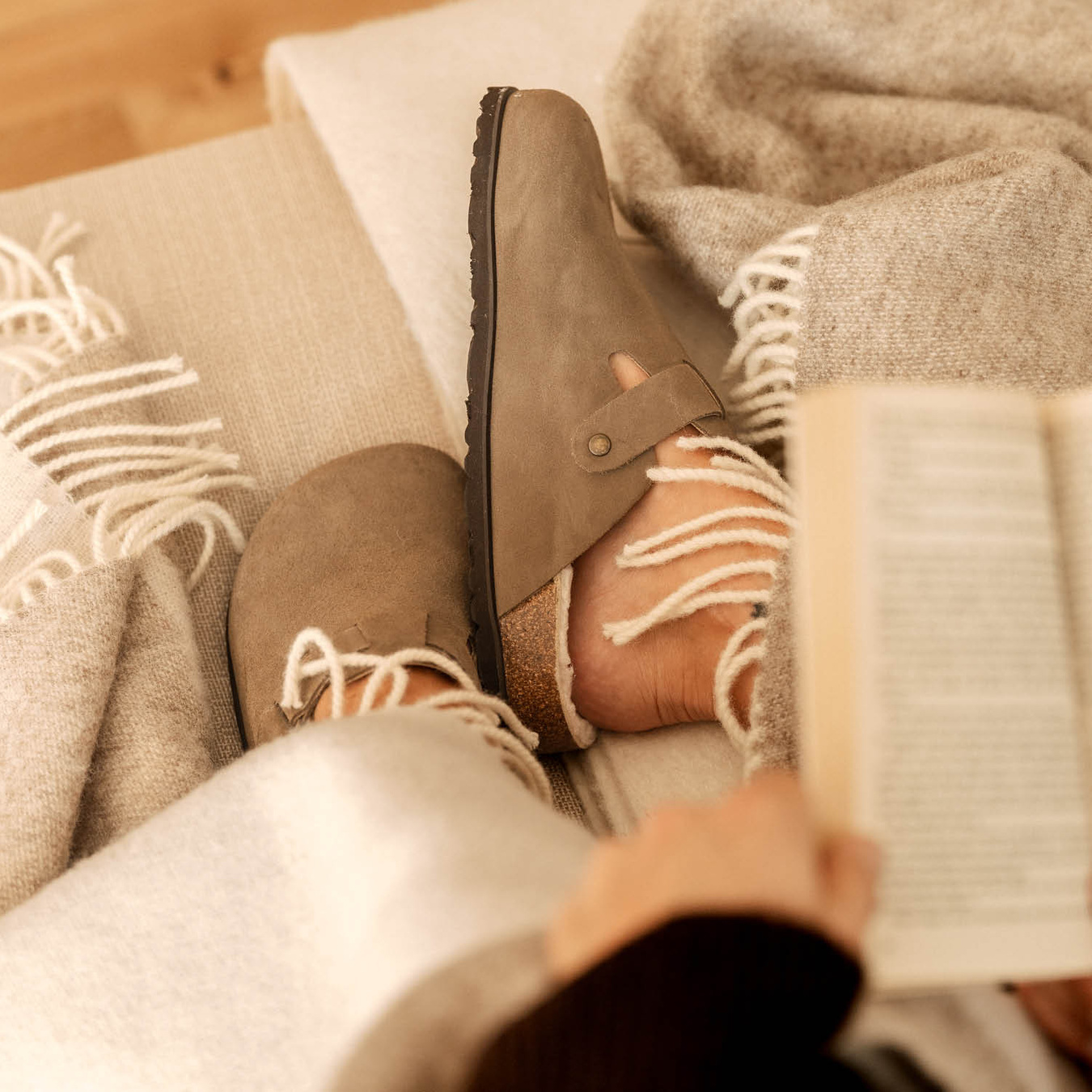 Shepherd Hilma is a timeless clog designed to work just as well with your work outfit as for brunch with friends or a stroll around town. It is now available in two natural materials: soft suede with a classic matte finish, and warming wool. The adjustable strap ensures a secure fit, while the molded cork insole, lined with genuine sheepskin, follows the shape of the foot and provides all-day support.
