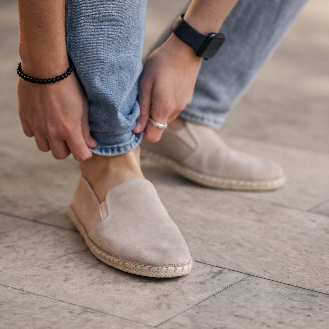 The Jan espadrille is available in both soft wool and supple suede. Both materials are naturally breathable and provide a comfortable feel against the foot, while offering different expressions and textures. Wool gives a softer, more natural look, while suede adds a slightly more sophisticated and structured appearance. Whichever material you choose, you get the same comfort and functionality.