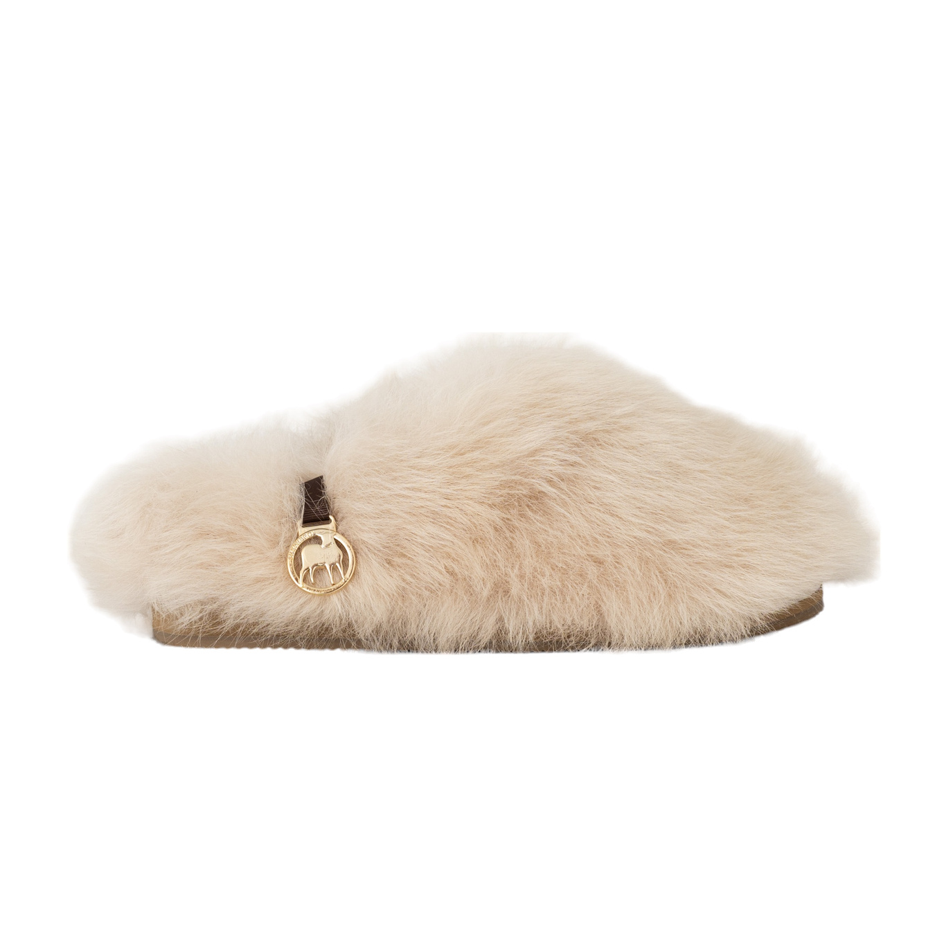 Shepherd Meribel is a trendy and fluffy slipper made from long-haired genuine sheepskin. It features a gold-coloured Shepherd logo on the side. Meribel is a slip-in model that's easy to put on, with light heel support.